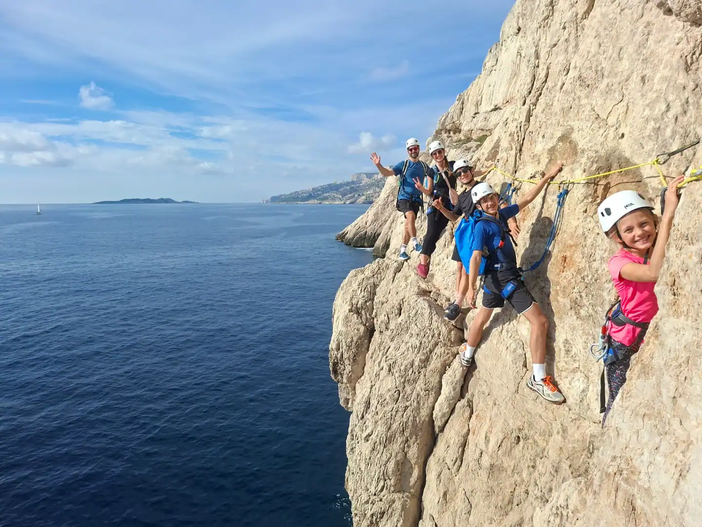 Yescalade propose des sorties d’escalade, grande voie et via cordata dans le Parc national des Calanques, au départ de Marseille, Cassis et La Ciotat, encadrées par un moniteur diplômé.